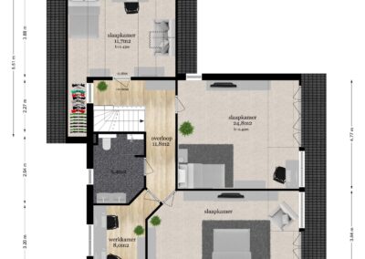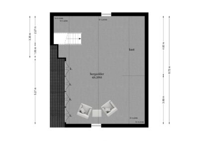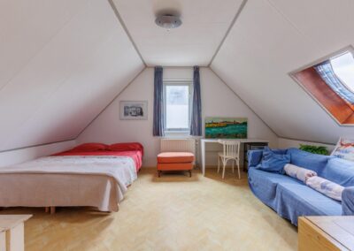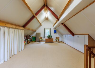 2e Verdieping: middels een vaste trap is de grote zolderverdieping te bereiken. De ruime en praktische zolder is maar liefst 42,3 m² groot en voorzien van 2 ramen en praktische kastruimte onder de knieschotten. Deze verdieping kan op eenvoudige wijze ingedeeld worden met 5e en eventueel 6e slaapkamer.