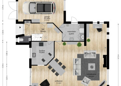 – Inpandig bereikbare garage van meer dan 23 m² met mogelijkheid tot ombouw naar werken aan huis, mantelzorg of voor oudere thuiswonende kinderen;