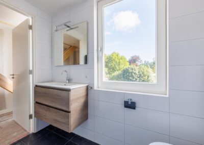 2e verdieping: Via een vaste trap toegang naar de overloop. Badkamer ingericht met inloopdouche, wastafelmeubel en toilet. Slaapkamer.